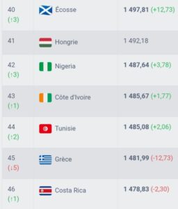 ومن المنتظر أن يُنشر التصنيف القادم للفيفا في 23 أكتوبر المقبل