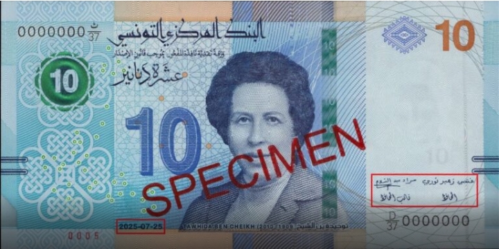 في مذكرة إلى البنـوك والديوان الوطني للبريد أعلن البـنـك المـركــزي التونسي طرح بداية من تاريخ 17 أكتوبر 2025 ورقة نقدية تونسية جديدة للتداول من فئة عشرة دنانير (صنف 2020) لها الّرواج القانوني والقوة الإبرائية وتحمل نفس التصاميم و الخصائص وعالما الأمان المعتمدة في الورقة النقدية المتداولة حاليا من نفس الفئة والصنف باستثناء: