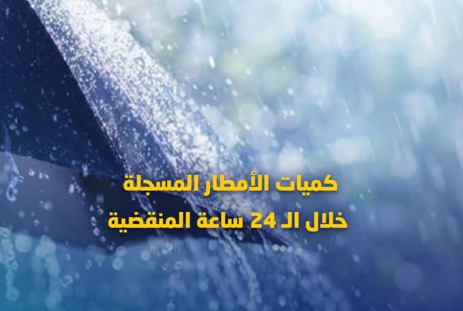 كميات الأمطار المسجلة خلال الـ 24 ساعة المنقضية