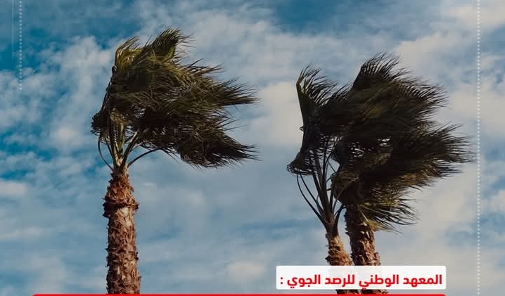 والريح شمالية غربية بالشمال والوسط ومن القطاع الشرقي بالجنوب قوية إلى قوية جدا خاصة قرب السواحل والمرتفعات ومحليا بالجنوب مع دواوير رملية ومعتدلة ببقية المناطق، والبحر شديد الاضطراب.