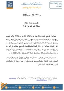 كما توقع المعهد الوطني للرصد الجوي، تساقط بعض الثلوج بالمناطق الجبلية للشمال والوسط أثناء الليل.